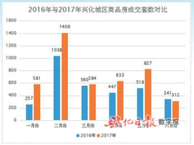 兴化城区上半年成交商品房4339套 同比上涨近四成
