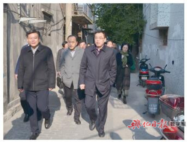 泰州市领导卢佩民(左一)深入社区走访慰问弱势群体。