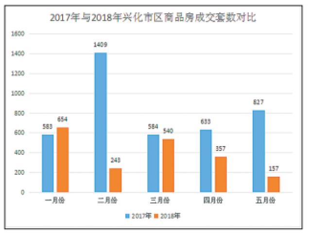 兴化城区5月份成交商品房157套,成交量同比下降
