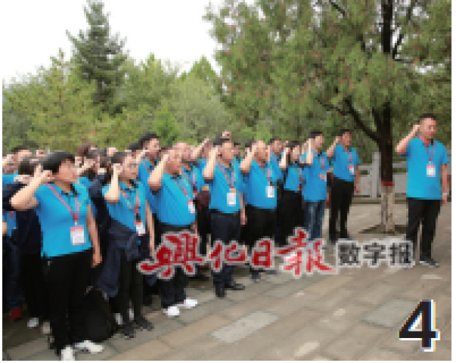 图1 在宝塔山下合影。 图2 兴达公司董事长刘锦兰上党课。 图3 在梁家河参观学习。 图4 党员在宝塔上宣誓。