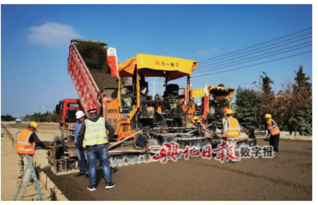 镇党委副书记李建龙现场介绍,压路分三道工序,先用双钢轮压路机进行初压,再用单钢轮压路机复压,最后用胶轮压路机终压。他说:“PPP项目包括园区大道、新泽路和工业污水处理厂,总投资6.59亿元,是戴南近10年城建投资总和,老百姓关注度高,来不得半点闪失!”