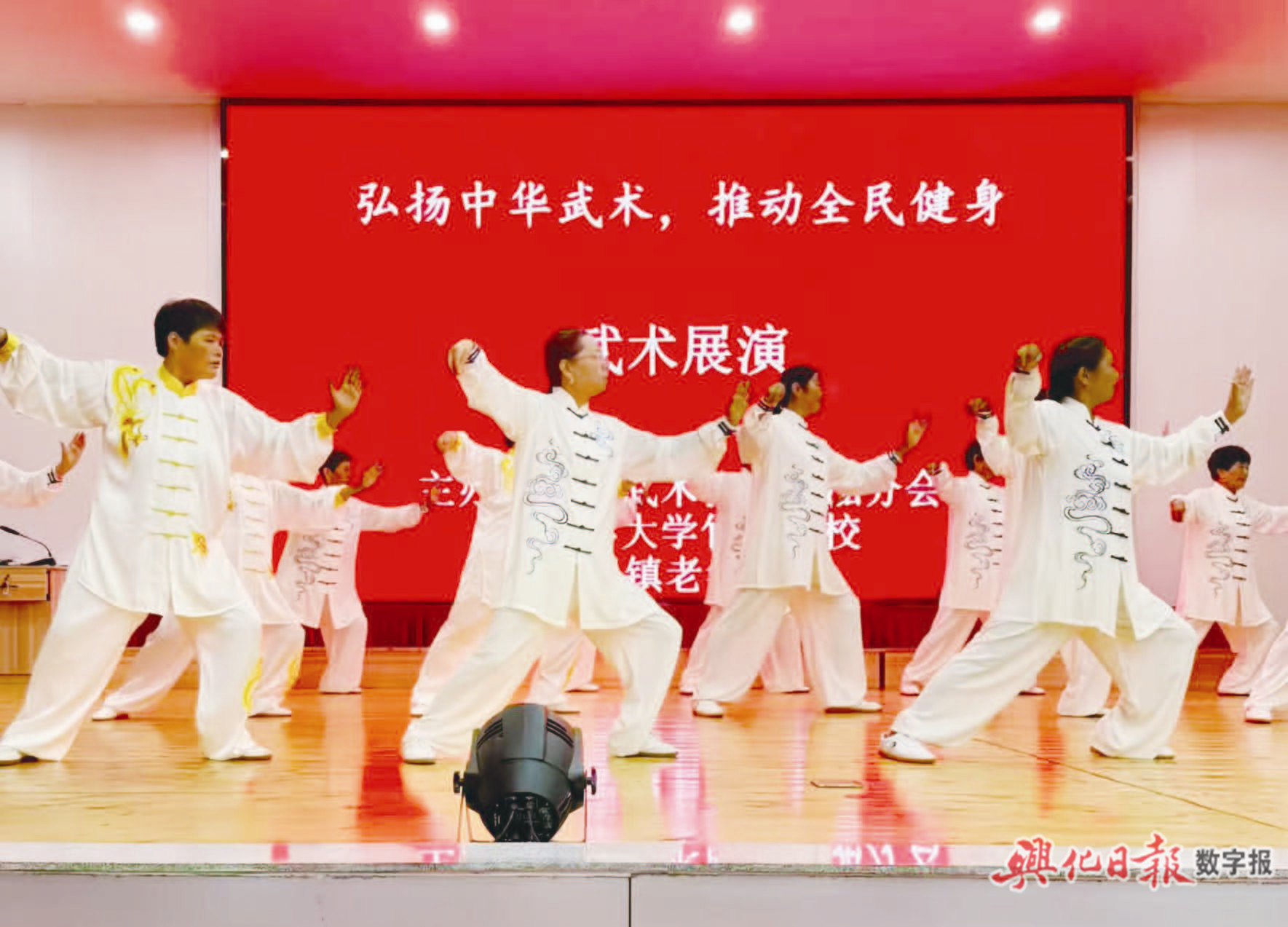 9月13日,由兴化武术协会竹泓分会、老年大学竹泓分校、竹泓镇老年协会主办的以“弘扬中华武术,推动全民健身”为主题的武术展演活动在竹泓镇新时代文明实践所举行,吸引了全镇武术爱好者参与。