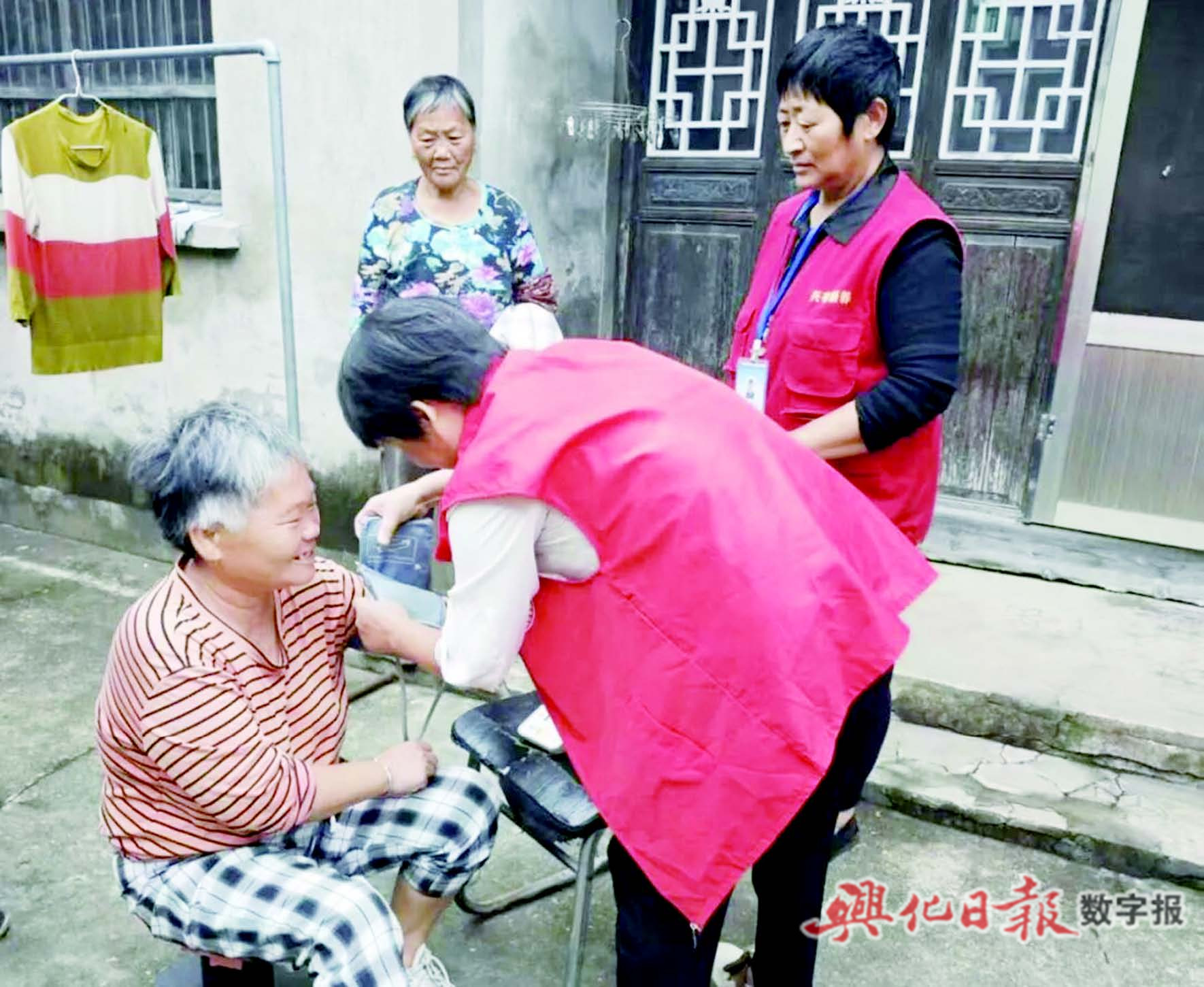 近日,垛田街道新钱村志愿服务队开展志愿服务活动,将健康关怀送到老人身边。