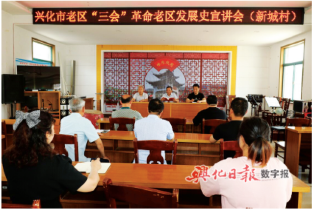 本报讯(通讯员 陈鸿鸣)”我们兴化早期投身革命洪流的共产党人主要有沈云楼、徐开基、李继龄……”日前,市老区“三会”副会长姚玉海来到昭阳街道新城村,向干群宣讲兴化革命老区发展史。市老区“三会”把学习、宣传、运用革命老区发展史作为重要政治任务,使之成为弘扬老区精神,传承红色基因的宝贵财富。