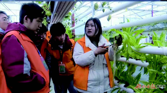禾小二农业科技有限公司是一家从事无土栽培、苗床、阳台种菜等设备生产的企业,搭建的智能温室大棚里面温暖如春,绿意盎然,这儿就是今天这节劳动实践课的主阵地。学生们分为栽种、授粉、采摘三个小组,在指导老师的带领下分工合作,这让学生们学习起农业知识来更加有专业性。