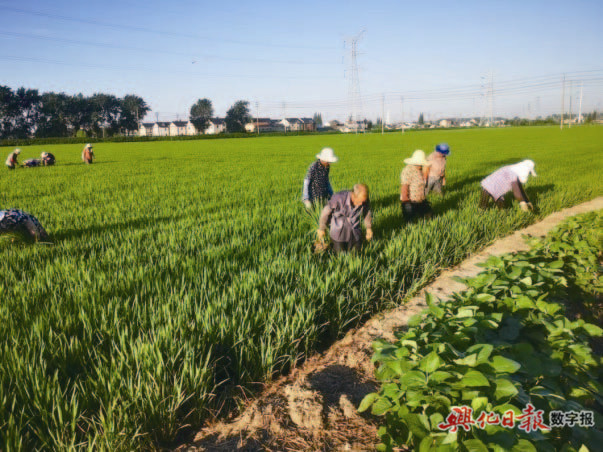 稗草是一年生禾本科植物,和稻子外形极为相似的稻田常见杂草,与稻子争夺水分、养分和生长空间,严重影响稻子的生长。家住戴南镇季家村的农场负责人刘德旺介绍,自己的农场共有300多亩田,一年稻麦两熟,这一季种植的是优质粳稻“南粳9108”。他们有一台中型拖拉机、两台插秧机、三台大疆无人机,实行了粮食生产全程机械化。稗草生长繁殖力极强,前期化除时往往有“漏网”的,所以还得人工拔除扫残。为了防止大家中暑,他们选择凌晨5时到上午9时左右这个时段作业。