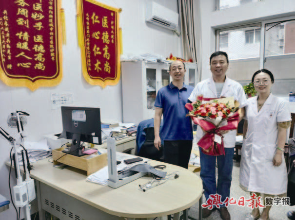 “各位辛苦了!祝大家节日快乐!”中心负责人来到医院门诊部各诊室、住院部、家庭医生工作室等科室,为医师们送上美丽的鲜花和真挚的祝福,并与医师亲切交谈,感谢他们常年坚守在医疗一线所付出的辛苦,同时鼓励大家发扬“敬佑生命、救死扶伤、甘于奉献、大爱无疆”的崇高精神,以更加饱满的热情投入到社区卫生服务工作中。