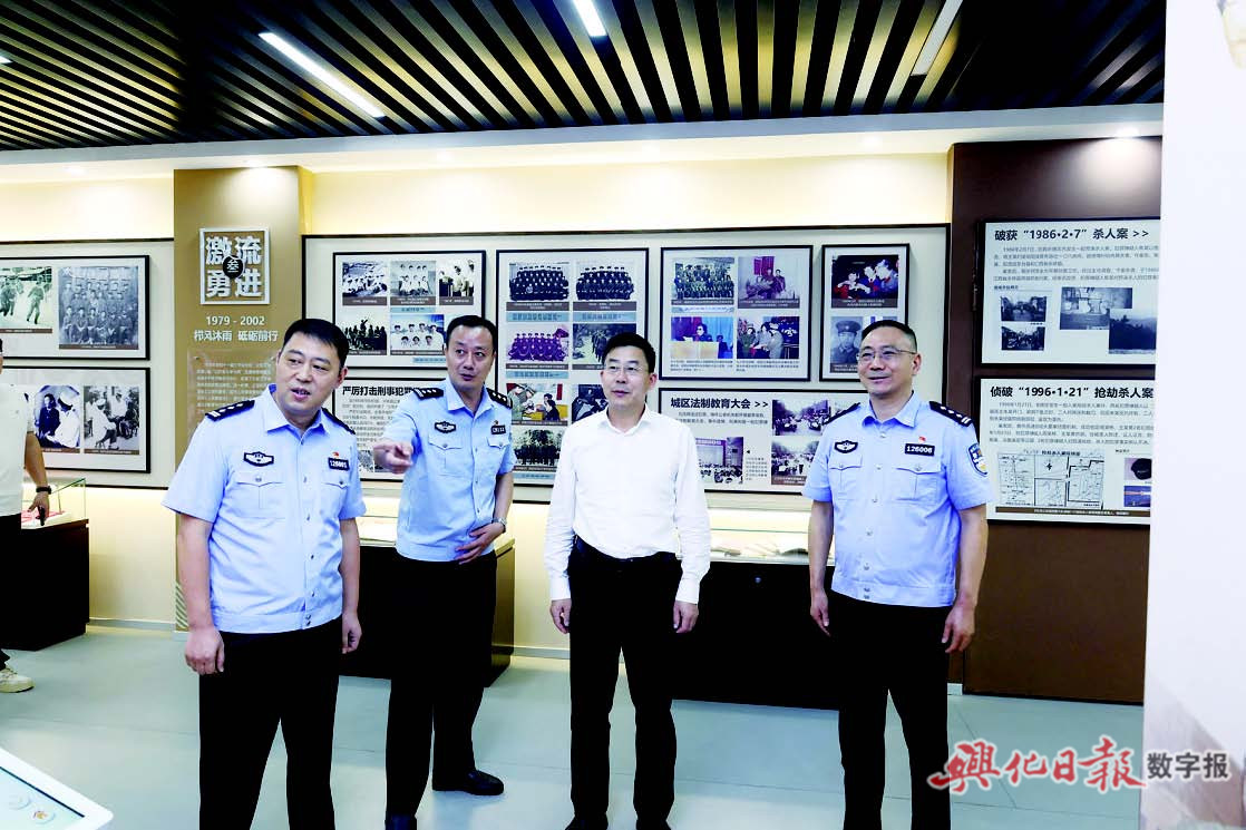 陈锋剑先后调研市网络合成作战战训基地、侦查中心。近年来,市公安局忠诚履行职责,勇于担当作为,全力以赴保稳定、护平安、促发展,打击犯罪质态连续多年位列泰州公安系统前列,未成年人重复犯罪率在泰州保持低位运行。陈锋剑对此表示充分肯定。他指出,当前正是我市文旅活动高峰期。前期,在公安机关和公安干警的努力下,圆满完成莲溪湖公园群星演唱会安保工作,并即将迎来2025兴化马拉松赛。要坚持主动作为、靠前服务,深入研判风险隐患,精心做好应急保障,确保比赛过程全员安全、全程安全、全域安全。