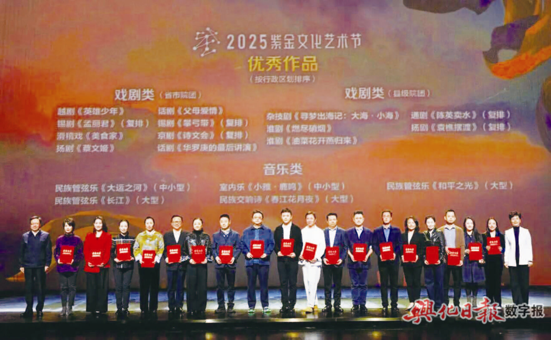 紫金文化艺术节由中共江苏省委宣传部、江苏省文化和旅游厅、江苏省文学艺术界联合会共同主办,是江苏省内层次最高、规模最大、影响力最广的综合性文化艺术盛会。本届艺术节延续“艺术的盛会、人民的节日”这一宗旨,集中展示全省最新艺术成果。据悉,今年艺术节,从48部申报作品中遴选出15部新创剧目、7部经典复排剧目、10部音乐作品进行会演、参与评审。《油菜花开燕归来》在此高规格平台荣获双奖,充分证明了该剧在思想性、艺术性与观赏性上达到了省级领先水准,赢得了专家与观众的广泛认可。