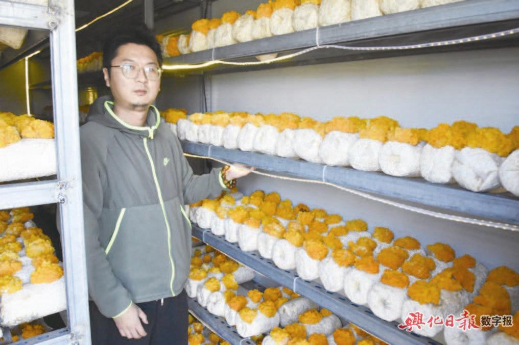 本报讯(特约记者 袁开建 通讯员 王晓荣)五个貌似大型卡车的方舱一字儿排开,打开一看,恰似超市货架上的菌棒上,长满了金黄色的宛如菊花的菌菇……这是初冬时节在戴南镇三优现代农业观光产业园内看到的情景。