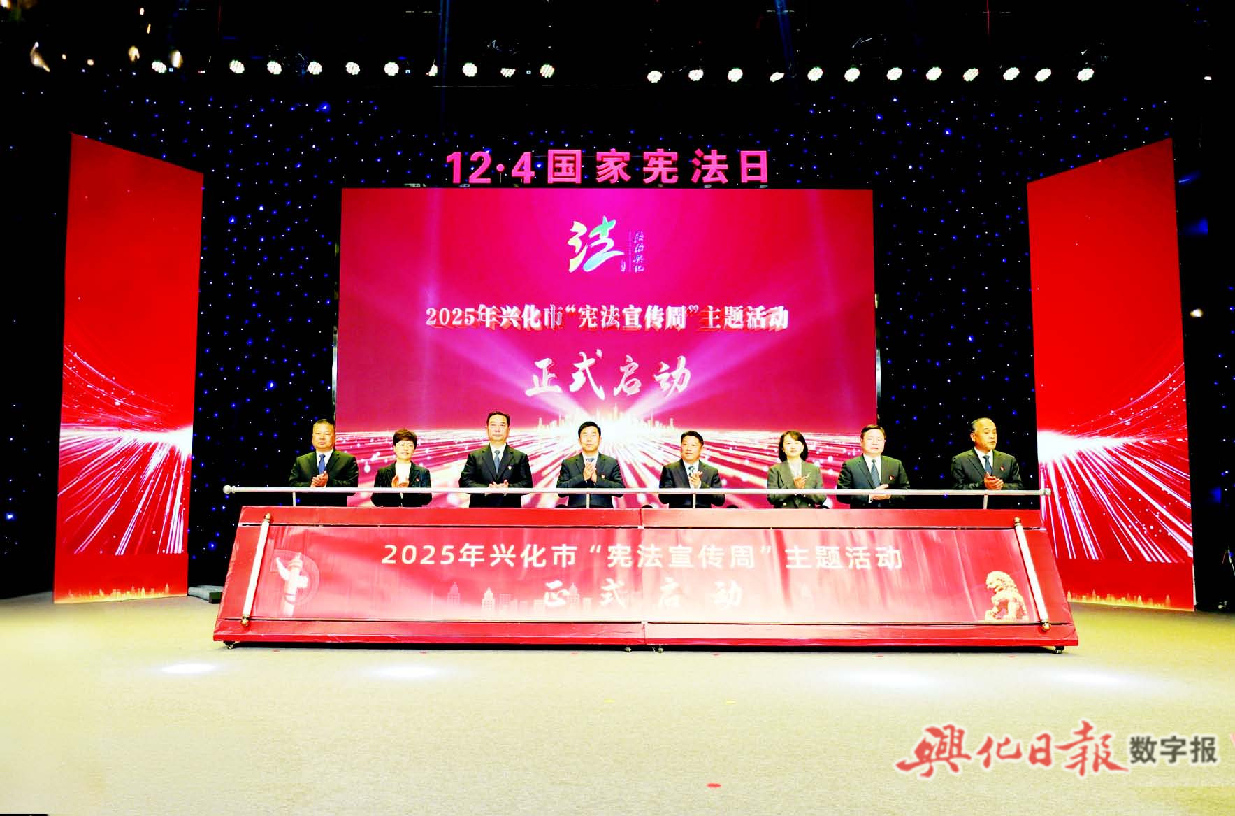 陈锋剑在致辞中指出,加强宪法学习宣传教育是实施宪法的重要基础。全市各单位部门要深入学习贯彻习近平法治思想,认真贯彻实施法治宣传教育法,广泛开展宪法进机关、进农村、进企业、进校园、进社区,推动宪法宣传教育常态化长效化。要结合“八五”普法总结和“九五”普法规划研究制定,不断创新普法理念、普法机制、普法方式,持续提升公民法治素养。广大党员干部要带头学法守法,善于运用法治思维和法治方式化解矛盾、维护稳定、应对风险,争做宪法的忠实崇尚者、自觉遵守者、坚决捍卫者,为推进兴化现代化建设贡献法治力量。